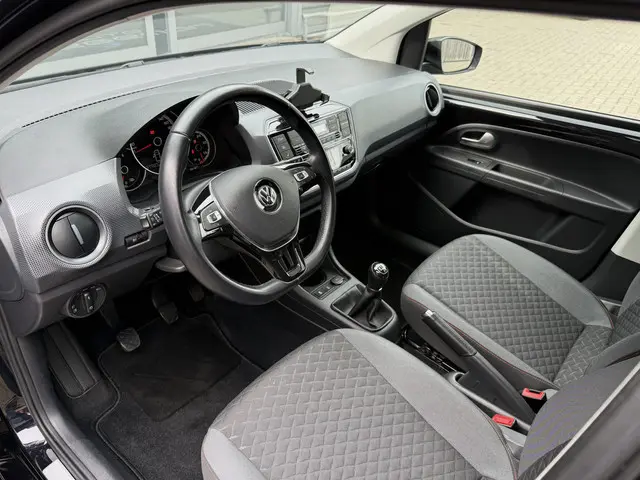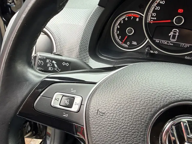 Door de smartphone connectiviteit ontvangt het audiosysteem muziek van elk device. Het audiosysteem doet het op eigen kracht, alle software up-to-date. Deze Volkswagen Up! is voorzien van sensoren aan de achterzijde om een achteropkomend verkeer waarschuwing te geven als de afstand tussen u en een achterligger te klein is. De automatische airconditioning zorgt voor een prettige binnentemperatuur. Boem is ho? Niet bij deze Volkswagen Up!. De piepjes van de parkeersensoren waarschuwen u op tijd voor obstakels. Natuurlijk is een complete auto als deze ook voorzien van sensoren die de omgeving in de gaten houden. Deze Volkswagen heeft niet alleen een automatisch inschakelbare verlichting aan boord, maar ook een regensensor. Wat u ook in deze auto kunt vinden zijn cruise control, lederen stuur, centrale deurvergrendeling met afstandsbediening, boordcomputer en lederen versnellingspook.