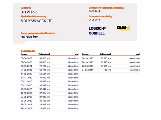 Voertuiggegevens van deze Volkswagen up!