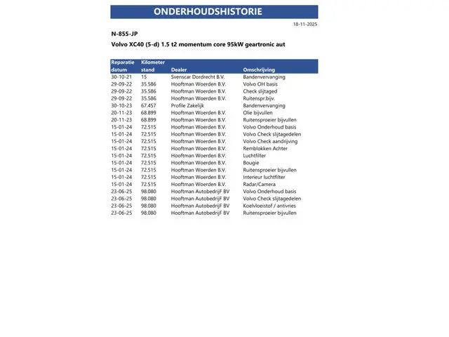 - Onderhoudsboekjes aanwezig