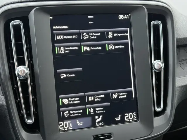 De geavanceerde technologie in deze Volvo is in staat om onderweg het verkeer om u heen te monitoren en er op te reageren. Zo hebt u als het ware een automatische co-piloot aan boord. De actuele snelheidslimiet, een inhaalverbod en andere verkeersborden; de verkeersborddetectie ondersteunt u tijdens elke rit. Keep your lane? Het Lane-keeping systeem zorgt er automatisch voor. Mindert een voorligger onverwachts te veel vaart, dan komt de forward collision warning in actie en waarschuwt meteen. Bovenop deze veiligheidsfeatures heeft deze Volvo bovendien hill hold functie, brake assist, vermoeidheidsherkenning en bandenspanningcontrolesysteem.