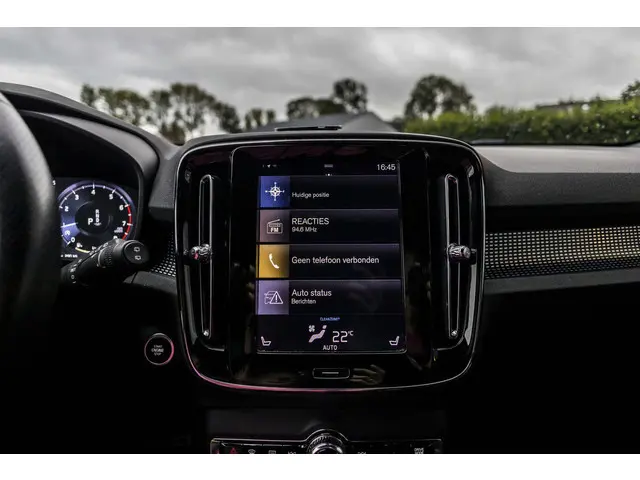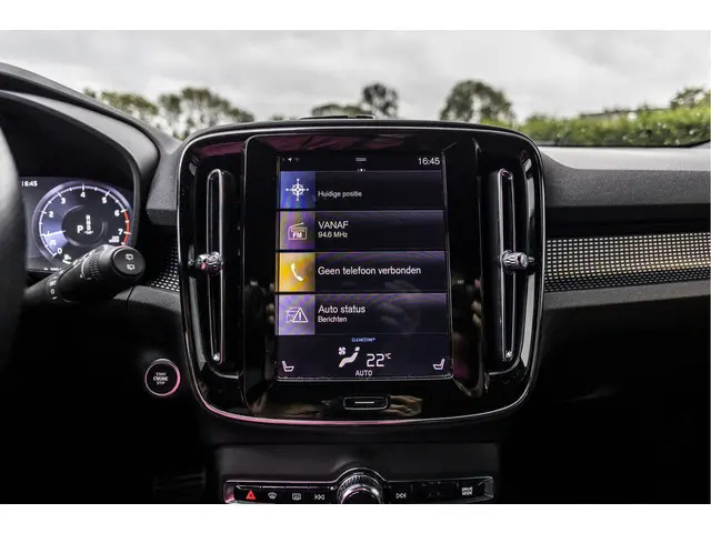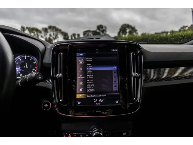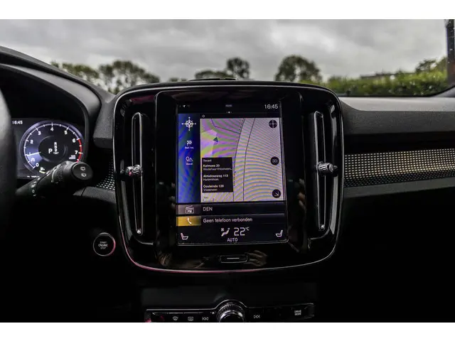 Elegante lijnen en een relatief groot glasoppervlak geven deze Volvo XC40 zijn stijlvolle uitstraling. De ledkoplampen benadrukken dat nog eens, ze schijnen krachtig in het donker. Met zijn uitgekiende onderstel en slimme veiligheidssystemen biedt deze auto u te allen tijde veilig en comfortabel rijplezier. Hij heeft een benzinemotor en een automatische transmissie. Op koude en donkere dagen zijn de verwarmbare voorstoelen een uitkomst. Bij de uitrusting van deze Volvo horen onder meer 19 inch lichtmetalen velgen, Full LED koplampen, sportonderstel, zwarte hemelbekleding, getint glas en in delen neerklapbare achterbank.Over het digitale dashboard is goed nagedacht. Alle belangrijke functies binnen en buiten in één oogopslag. Alles vrij achter? De achteruitrijcamera laat het meteen zien. Oliepeil, bandenspanning, sloten en andere functies zijn via een speciale app overal te checken dankzij Connected Services. Het navigatiesysteem met harde schijf en het audio-installatiesysteem bedient u met knoppen op het stuur of met gesproken commando's. Ook handig is de draadloze telefoonlader. Zonder snoeren en kabels uw smartphone bijtanken! U bent in deze Volvo ook voorzien van WIFI-hotspot, achteropkomend verkeer waarschuwing, R-design, kruisend verkeer detectie, automatische airconditioning en regensensor.