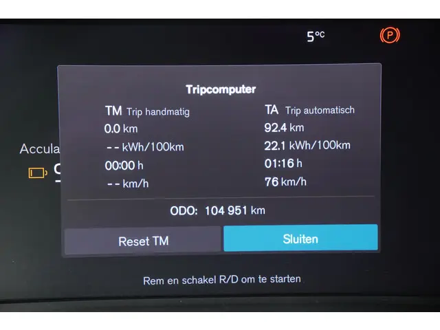 Gemiddeld elektriciteitsverbruik: 189 kWh/100km