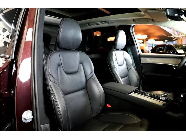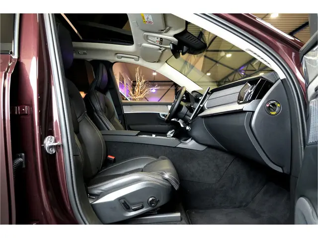 De vormgeving van deze bijna nieuwe Volvo XC90 is stijlvol maar ingetogen en dat maakt meteen duidelijk dat u van deze auto pure kwaliteit mag verwachten. De hybride motor van deze Volvo XC90 is de ideale combi van zowel brandstof- als elektromotor. Minder vaak naar de pomp, maar ook zuinig en schoon door de stad! De luchtvering maakt van deze auto een klasseauto. Voelbaar, merkbaar beter. Met behulp van de vierwielaandrijving kan deze auto met elk soort weer en wegdek overweg. Een lederen interieur staat al decennia voor stijl en klasse. Ook bij deze Volvo XC90. Deze auto is echt een verwenauto, met een verwarmbaar stuur, stoelverwarming met massagefunctie en een verwarmbare achterbank. U past de stoelen moeiteloos aan, ze zijn elektrisch in te stellen en hebben bovendien een geheugen. Licht en lucht komen onbelemmerd binnen als het elektrisch bediende glazen panoramadak met één druk op de knop wordt geopend. Tot de uitrusting behoren ook elektrisch bediende achterklep met sensor, 3e zitrij met 2 stoelen, elektrisch wegklapbare trekhaak, 21 inch lichtmetalen velgen, matrix led-koplampen, warmtewerend glas en adaptief luchtgeveerd onderstel.Middenin de winter stapt u in een behaaglijk warme auto dankzij de standkachel. De digitale wereld van mobiliteit verwelkomt u; op het digitale dashboard wordt alles weergegeven om uw rit gemakkelijk en veilig te maken. Het gebruik van de 360 graden camera op deze auto zorgt voor een groter gezichtsveld en helpt de dode hoeken te elimineren. Adaptive cruise control houdt de ingestelde snelheid vast en houdt automatisch afstand tot uw voorligger. Waar u zelf ook bent, u staat altijd in contact met de auto via de app op uw smartphone. Zo controleert u uiteenlopende functies, ook op afstand. Natuurlijk behoren dashboard met spraakbediening, het ongeevenaarde Bowers&Wilkins High End HiFi Surround Soundsysteem, full map Google Live Navigatiesysteem, WIFI-hotspot, achteropkomend verkeer waarschuwing en kruisend verkeer detectie ook tot de uitrusting van deze complete auto.