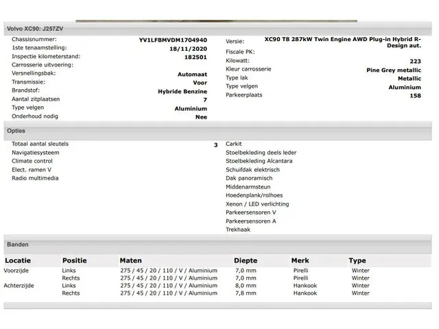 Voertuiggegevens van deze Volvo XC90