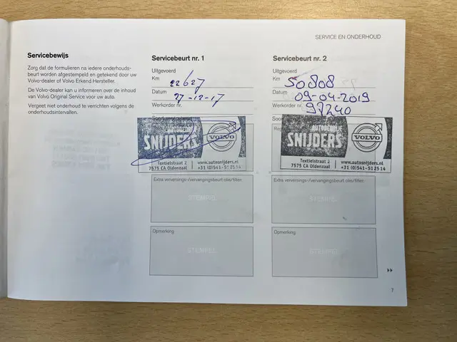 Onderhoudsboekjes: Aanwezig